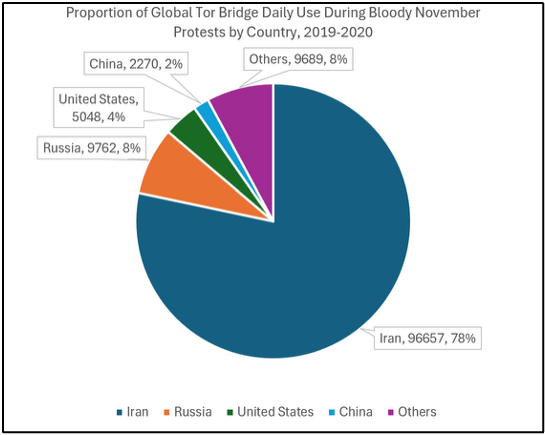 Proportion of Global Tor Bridge Use During Bloody November Protests by Country, 2019-2020