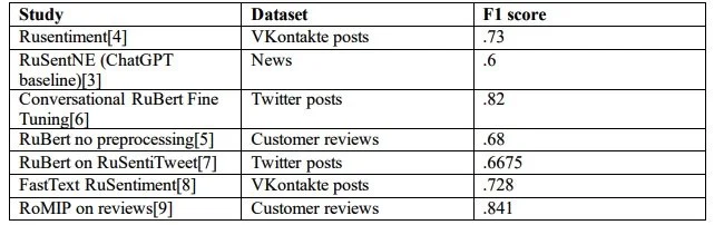 [5] Kotelnikova, Paschenko, and Razova. “Lexicon-Based Methods and BERT Model for Sentiment Analysis of Russian Text Corpora.” CEUR Workshop Proceedings, 2021.